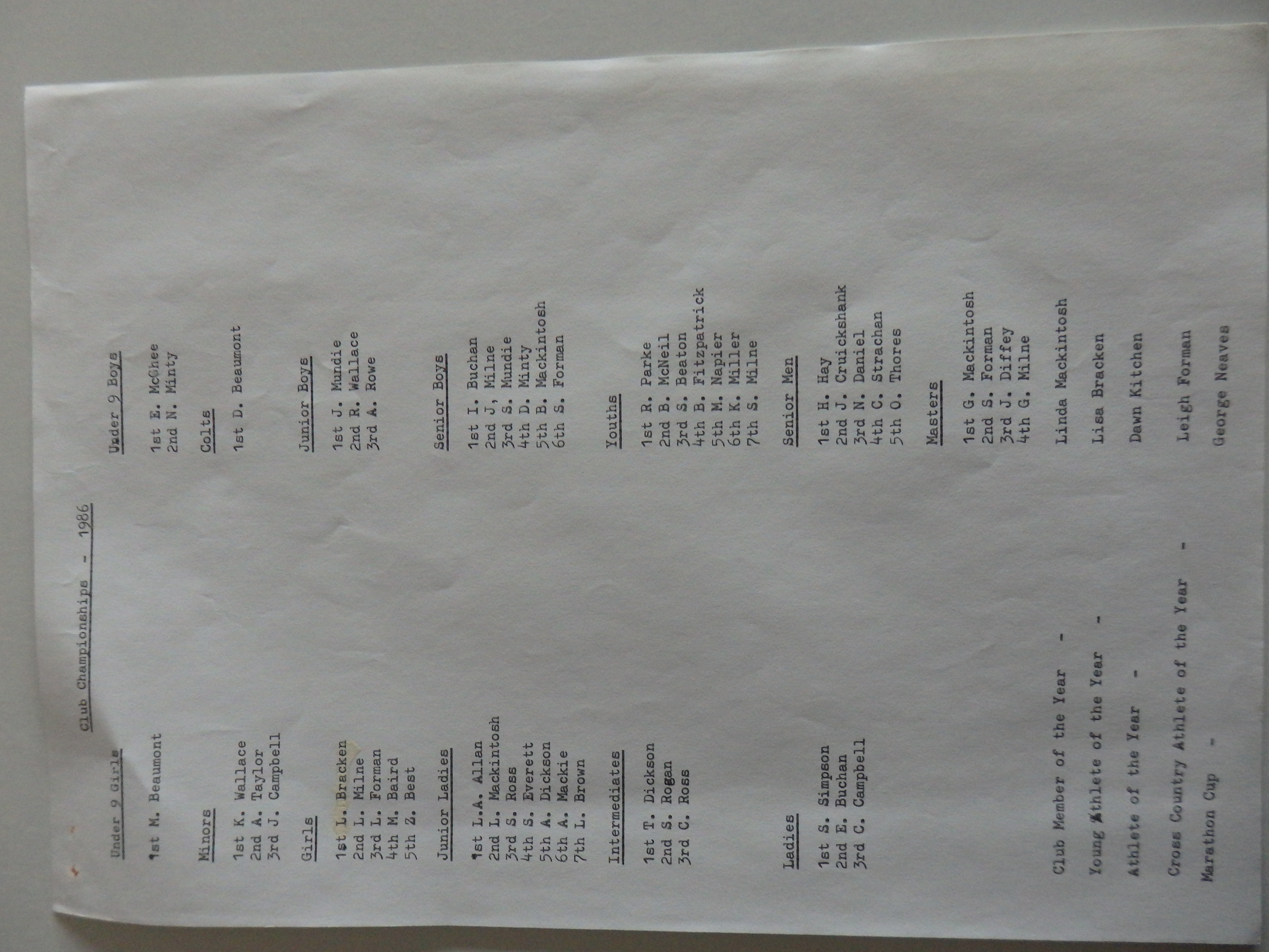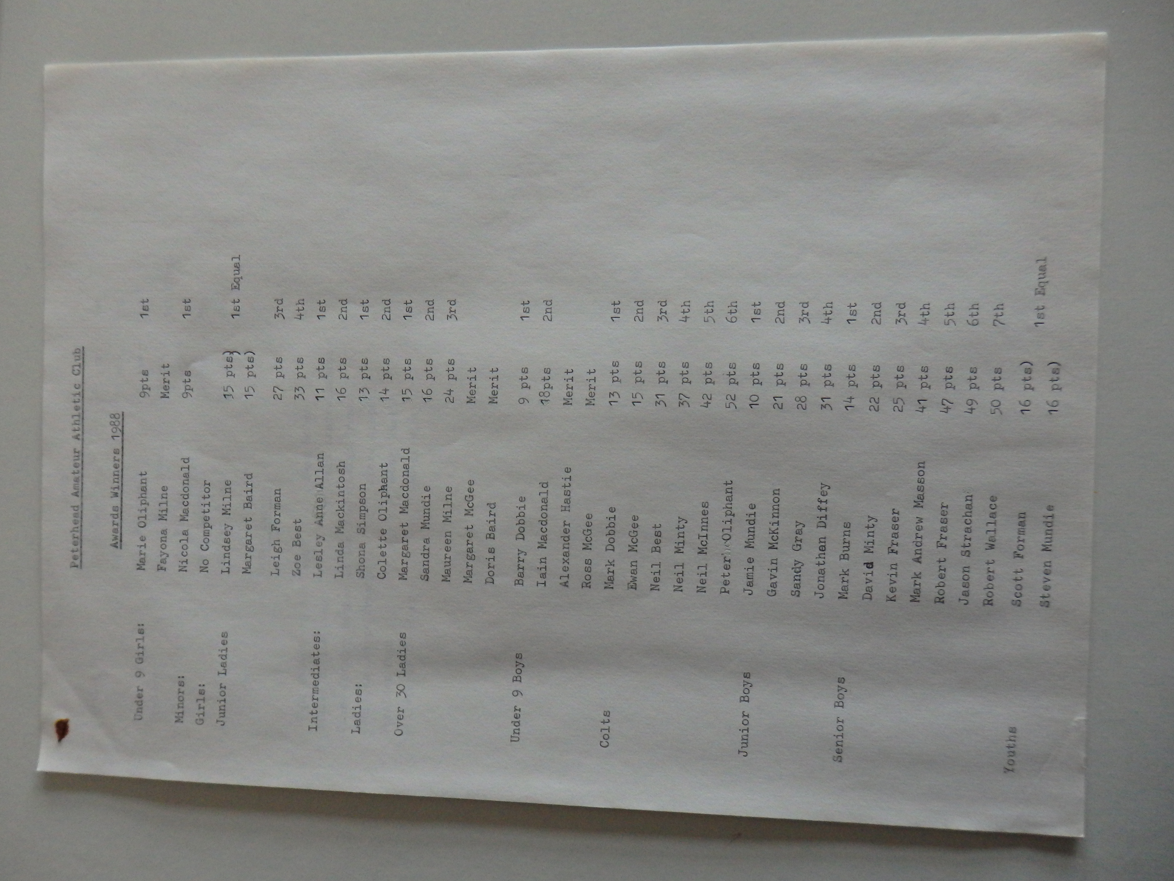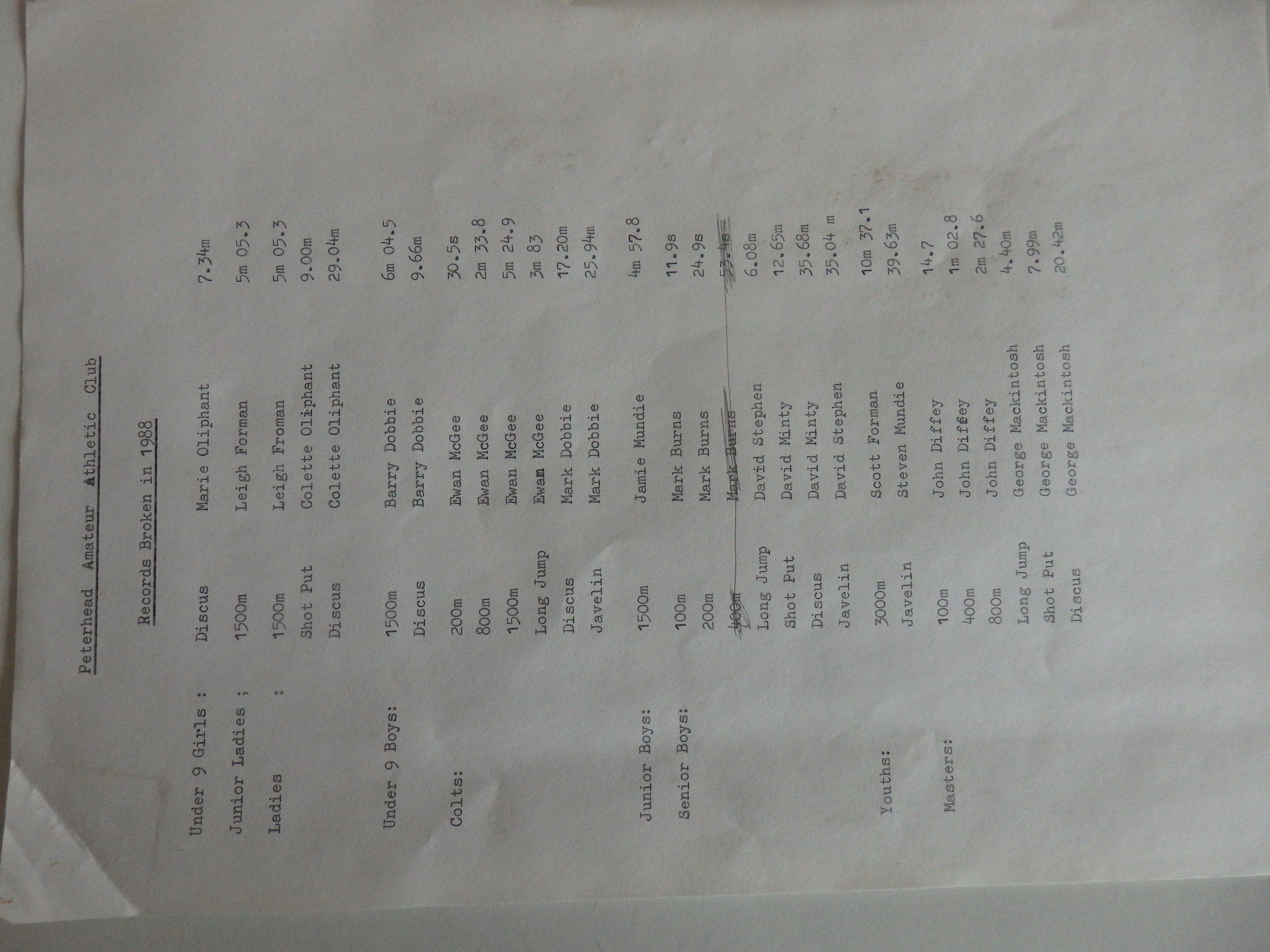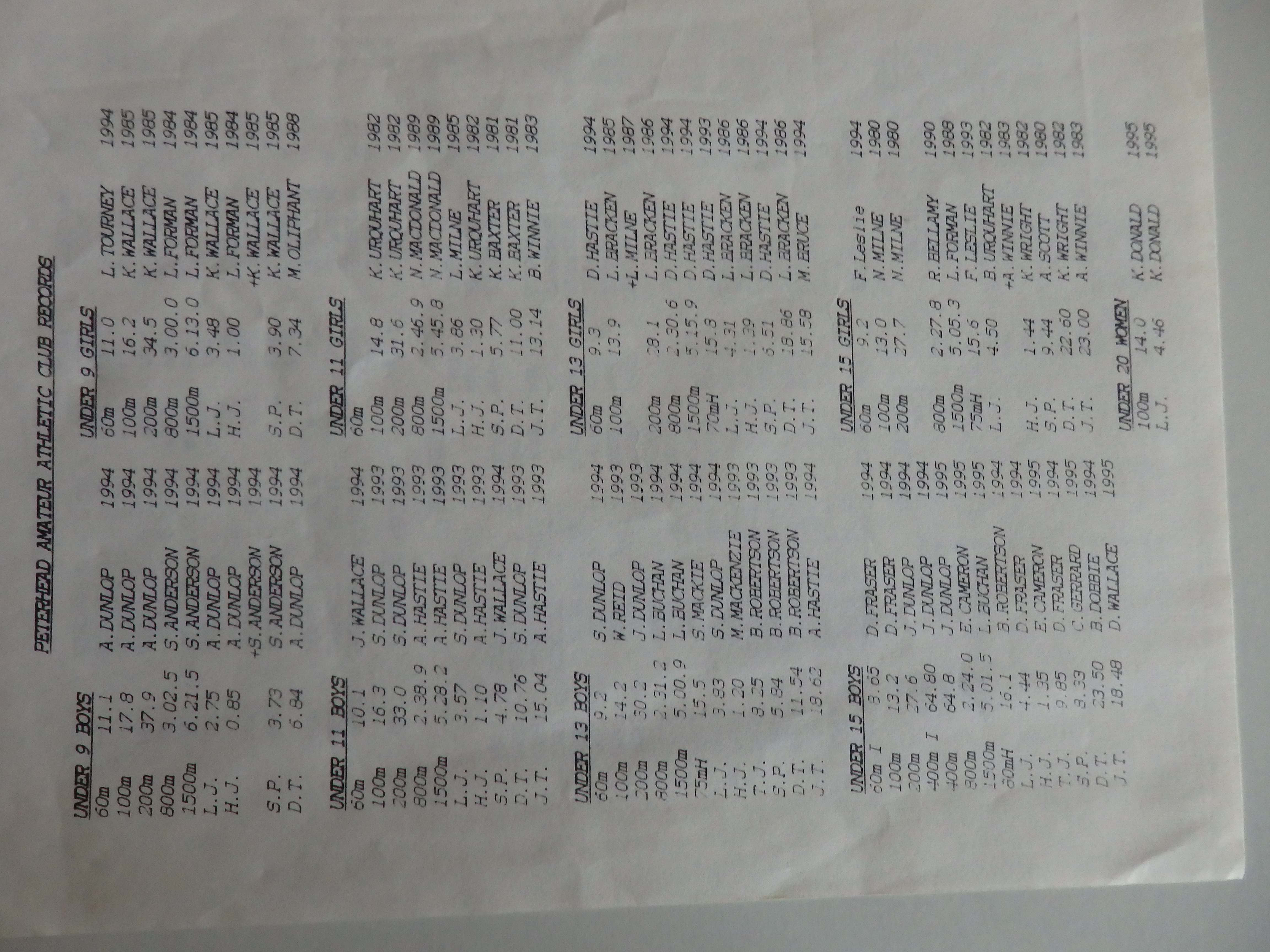 Archives of athletics in Peterhead and the surrounding area